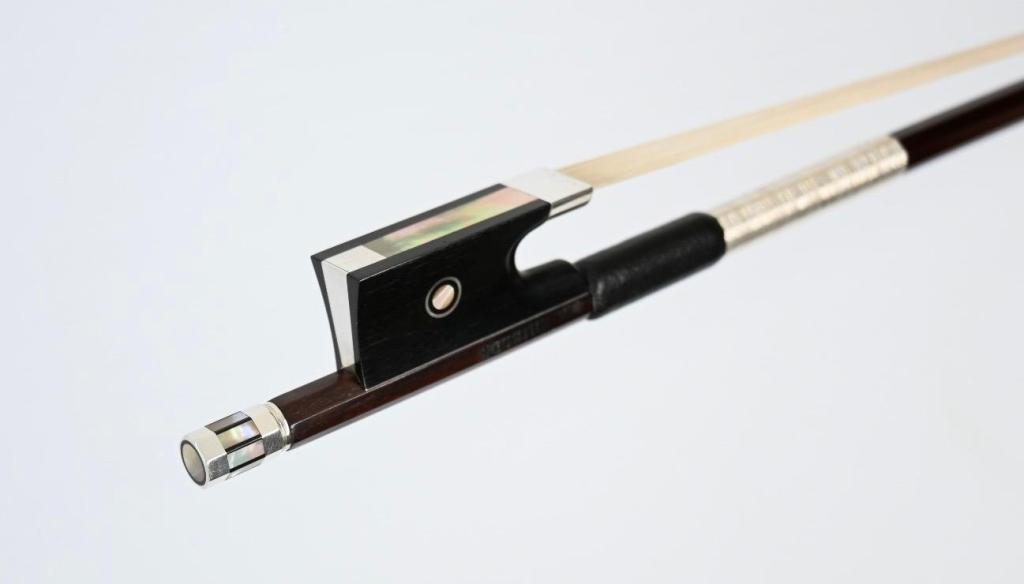 The windings on bows in this range are either silver-plated nickel, 925 silver, or imitation whalebone. The latter is a very light, durable, modern plastic product that mimics the natural products historically obtained from the whaling industry, and which were used to create the unique black and ivory two-toned design that features on many famous Hill bows of the early 20th century.